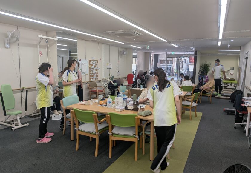 午前・午後それぞれ10名を制限とし、個別機能訓練を実施しています。安心して訓練ができるよう、すぐにサポートに入れる状態を維持しています。
